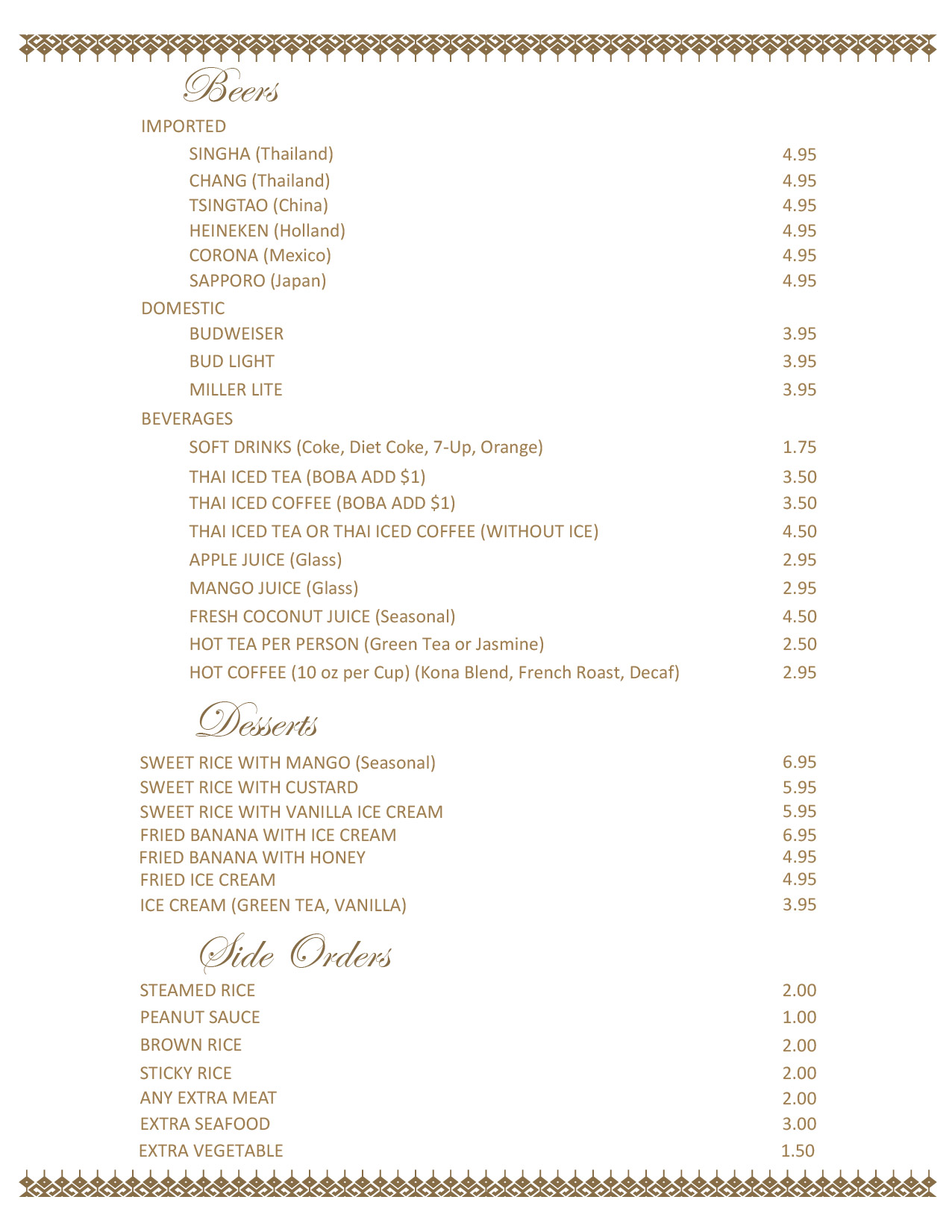 Beverages, Desserts & Beers